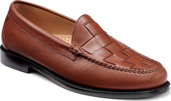 A woven vamp and classic penny-slot strap add eye-catching style to a nappa-leather moc-toe loafer that elevates your work or weekend ensembles.