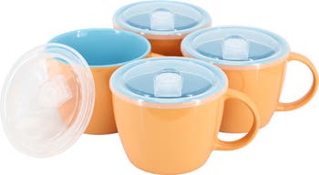 On The Go 4 Piece 25 Ounce Stoneware Soup Cup Set with Lid