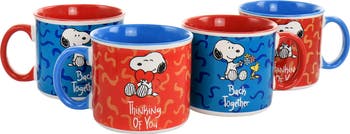 What better way to add some lighthearted fun to your morning coffee than to start your day off with a Snoopy song! This set of two assorted designed mugs feature your favorite classic characters in a colorful and whimsical way. Snoopy and Woodstock are featured on these mugs with fun phrases. Stoneware construction is dishwasher and microwave safe for easy clean up and fast reheat. These wide mouth mugs hold up to 21oz of liquid.