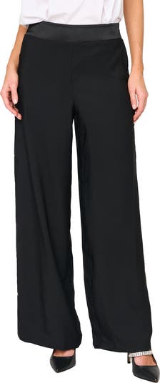 Fall for the silhouette of these flowy wide-leg pants designed with a satiny elastic waistband.