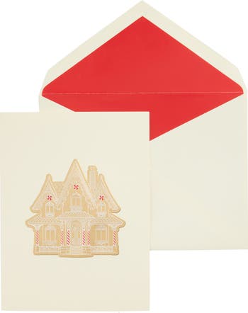 This handcrafted holiday card—that comes in a set of 10—is elevated with sugary details and festive decorations beautifully engraved in a gilt design. They come with coordinating envelopes lined in red, instantly providing a pop of holiday spirit as soon as the card is opened.