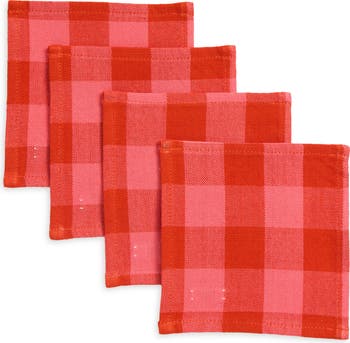 Gingham Guava Set of 4 Cocktail Napkins