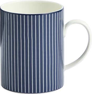Sip your favorite beverage from this modern bone china cup detailed with distinctive pinstripes and a hand-applied blue accent line.