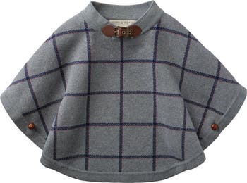 This fabulous cape is a show stopper! Features a beautiful plaid intarsia in our super soft organic cotton, a smart looking collar with buckle closure, and button details at the armholes. Rib knit at the collar and hem. Pair it with our collection of organic cotton tops and leggings for a chic look!