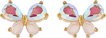 Enchant any look with these dainty butterfly studs shimmering with cubic zirconia and 18-karat-gold plate.