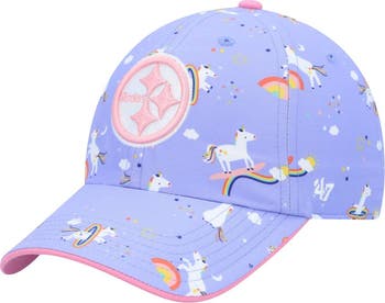 Unite your little one s love for mystical creatures and the Pittsburgh Steelers with this Unicorn Clean Up hat. The adorable allover pattern by 47 inspires their imagination as the Pittsburgh Steelers logo shows which NFL team they support. An adjustable strap makes customizing the fit of this cute cap easy.