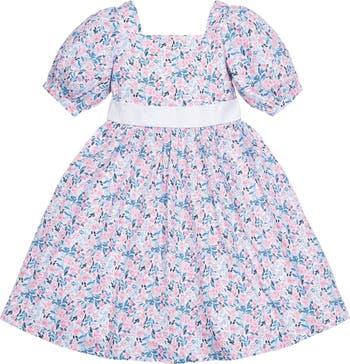 Our gorgeous puff sleeve party dress in soft organic cotton has all the incredible details that make it perfect for everything from dinner with the family to twirling on a dance floor. Features beautiful puff sleeves, waist sash with bow, and a button closure at the center back. A showstopper for spring time!