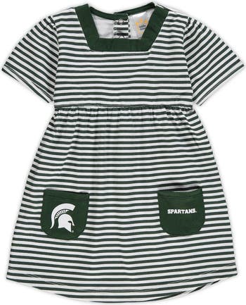 Your young fan will look absolutely adorable on game day when they have this Michigan State Spartans Striped dress. It s designed in team colors with two patch pockets on the front. Printed Michigan State Spartans graphics ensure your youngster can officially join in on the fun.