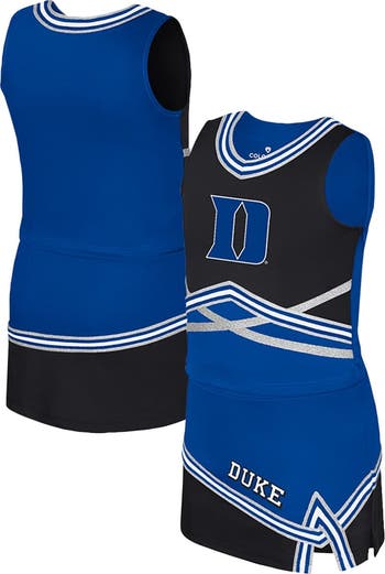 Get your favorite young fan ready to cheer on the Duke Blue Devils with this adorable Lollipop Park Cheer Two-Piece Set by Colosseum. The top features a hidden zipper and striped edge taping, while the skirt has an elastic waistband and hidden boy shorts for comfort and security. The printed Duke Blue Devils team graphics let everyone know who she s rooting for.