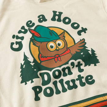 For over 50 years, Woodsy Owl has been sharing the USDA Forest Service�s message of environmental conservation: Give a Hoot, Don�t Pollute. Cuddle up in this officially licensed hoodie that helps spread the word about keeping Mother Nature pristine for ourselves and future generations to enjoy. Hoodie made of 60% cotton and 40% recycled polyester. Available in unisex sizes S�XXL. Hoodie made in Guatemala. Screen-printed in South Carolina.