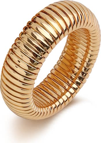 Architectural ring inspired by gladiator armor with a flexible Tubogas form for a powerful statement look.