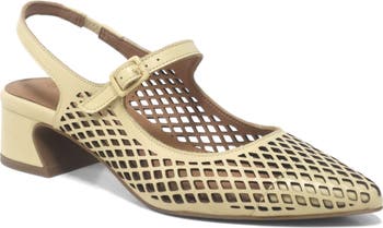 A perforated leather upper lends eye-catching appeal to a sophisticated pump lofted on a low block heel and built with arch support to ease every stride.