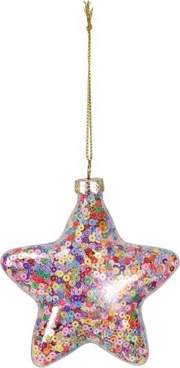 This glass star ornament is a treasure trove of shimmer. Its body, a clear glass canvas, is filled to the brim with sequins that reflect a spectrum of festive hues. It s not just an ornament; it s a beacon of holiday spirit, ready to bring a twinkle to the eye and a glow to the heart of any celebrant. The ornament is 3.25 inches in length and height, ensuring a dazzling display among the holiday decorations. This is a perfect choice for anyone who loves whimsical and adorable holiday decor.