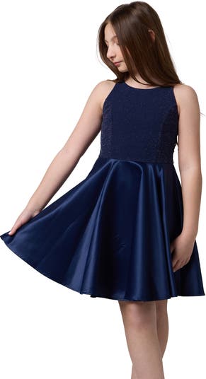 A little glitter with a little satin is a perfect combination for the extra special silhouette. With a stretchy bodice, this dress is a real winner on so many kids.