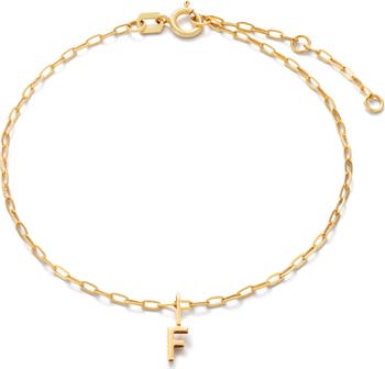 Perfectly pre-styled and personalized, this gold charm bracelet is a jewelry staple. Crafted in solid gold, this tarnish-free set features a delicate paperclip chain and shiny letter charm that can be added to your favorite stack.