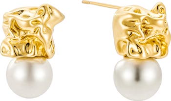 Delicate, dreamy, and effortlessly luxe. The Gossamer Earrings feature organic gold floral studs paired with a single luminous pearl drop. Perfect for adding a soft, sculptural touch to any bridal look.