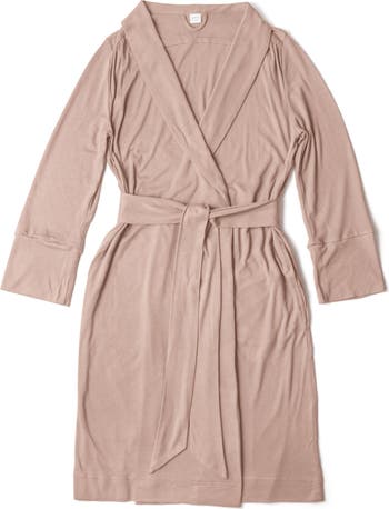 The perfect cozy robe to live in. Features 3/4 length hem and wrist-length sleeves, pockets to keep all the things you need to keep close, and a sewn-in waist tie so you will never lose it. Generously cut, so ideal for all body shapes, including maternity and nursing. All in our signature luxuriously-soft fabric made of 70% viscose made from Rayon and 30% organic cotton