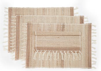 Banana Fiber. Big Impact. Beautiful Design. Messy meals? Spilled soup? These placemats do more than just protect your table — they tell a story of transformation, sustainability, and skilled craftsmanship. Made from an upcycled blend of banana plant fiber and cotton yarn, each placemat turns agricultural waste into a durable, elegant table essential. Banana plants bear fruit only once. After harvest, the stems are traditionally discarded — but here, they’re hand-twisted into strong, biodegradable ropes and combined with other natural fibers like jute, river grass, coconut leaf. Designed in the U.S. and woven on traditional handlooms in Southern India, these placemats are crafted by rural artisans who bring generations of skill to every step. Made under Fair Trade principles, they offer sustainable livelihoods to underserved communities—transforming waste into opportunity. Perfect for everyday meals, festive holiday tables, or as thoughtful hostess gifts, these placemats bring a fresh layer of texture, resilience, and purpose to any gathering. FEATURES • Size: 13"x19" – Perfect for standard place settings • Materials: Banana plant fiber cotton yarn – renewable, durable, and biodegradable • Upcycled Eco-Friendly: Made from banana stems that would otherwise go to waste • Handwoven on Traditional Looms: Crafted by rural artisans in Southern India • Fair Trade Certified: Supporting dignified, skill-based employment • Designed in the U.S.: A blend of modern design and traditional technique • Versatile Giftable: Great for everyday dining, Thanksgiving, holiday entertaining, or as a meaningful hostess gift • Care: Wipe clean with a damp cloth; spot clean with mild soap; dry in shade • Set of 4: Stylish, sustainable, and gift-ready Disclaimer: Due to the handmade and natural-fiber nature of this product, slight variations in color, texture, or size may occur. These are signs of authenticity and the human hand behind each piece.