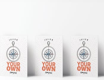 - Front artwork features "follow your own compass"