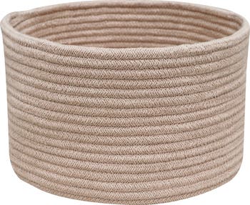 A round shape defines a handcrafted basket made with thicker, durable cord that provides ideal toy storage while making any nursery extra charming.