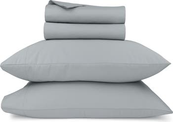 - 4-Piece Queen Sheet Set includes: 1 Flat sheet: 94"W x 102"L, 1 Fitted sheet: 60"W x 80"L; fits mattresses up to 16" and 2 Standard/Queen pillowcases (side openings): 21"W x 32"L (fits both standard and queen pillows)