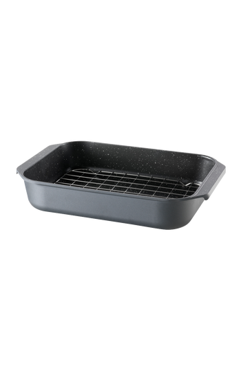 The Cuisine::pro® GRANITE™ 5.9 Qt Roaster with Rack is designed for oven roasting large cuts of meat or poultry with excellent airflow and even browning.