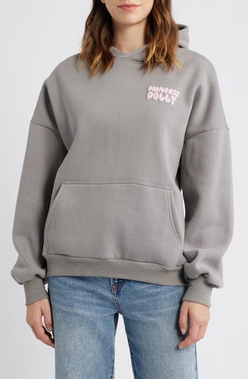 A puffy 3D logo brings signature charm to this oversized hoodie made from a recycled cotton-poly blend with dropped shoulders and an easy lounge-ready fit.