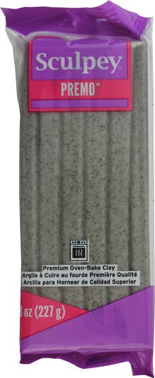 SCULPEY PREMO: GRAY GRANITE - 8OZ - WHAT IS SCULPEY PREMO? Polymer clay is loved by both beginners and advanced crafters for its flexibility, strength, and ease of use. Soft and pliable, yet firm enough to hold fine details, Premo is perfect for specialized techniques like caning, mokume gane, and mica shift. It contains a high concentration of mica particles for stunning effects and remains soft until baked. Extra clay can be stored without drying out, making it ideal for various projects. FEATURES BENEFITS: Premo is flexible, strong, durable, safe, and non-toxic. It does not air dry and stays workable until baked. It allows blending for unique creations. Its strength and pliability make it perfect for jewelry, DIY décor, mixed media, and more. HOW TO USE SCULPEY PREMO: This versatile clay is excellent for making detailed charms, faux stones, jewelry, and home décor. After baking, it can be carved, sanded, glazed, and painted for finishing touches. Create earrings, bracelets, rings, and pendants with mixed colors and patterns like marble or swirl. Craft unique home décor items such as air plant holders, planters, coasters, wall hangings, and personalized picture frames. Handmade ornaments and organizational dishes are also popular options. DOES SCULPEY PREMO DRY OUT? Sculpey Premo will not dry out from air exposure. It only hardens when baked. Store unused clay in an airtight container to keep it clean and fresh. HOW TO SOFTEN SCULPEY PREMO: If Premo becomes too firm, soften it by using a conditioning machine, mixing with clay softener or softer clay, processing in a food processor, or rolling it inside a plastic bag. BAKING INSTRUCTIONS: Bake at 275°F (130°C) for 30 minutes per 1/4 inch (6 mm) thickness. Do not microwave or exceed recommended baking time or temperature. Protect your workspace using an oven-safe mat, wax paper, baking sheet, or foil to prevent damage from uncured clay.