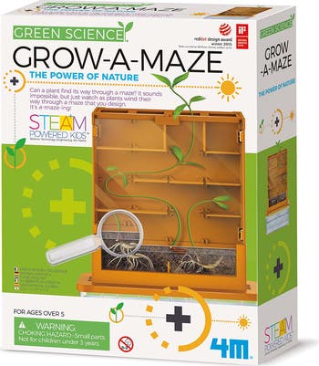GROW-A-MAZE - Can a plant navigate its way through a maze? With the Grow-A-Maze kit, you’ll discover just how amazing plants can be! This hands-on science kit allows kids and budding botanists to design their own plant maze and observe as plants wind their way through it. The kit is designed to teach key concepts like germination, geotropism, and phototropism while offering a fun and engaging introduction to plant biology. The plant maze consists of three main structures: a grow chamber with adjustable maze partitions, a water pot, and a transparent soil container that allows for root observation. Additional tools include plant supports, a magnifier, and a dropper for precision care and monitoring. With this complete plant growth lab, kids can conduct three structured experiments: observe how roots and shoots respond to gravity (geotropism), test how plants grow toward light (phototropism), and compare plant growth in light versus darkness with the exciting "Bean Race." What makes the Grow-A-Maze even more inspiring is its reusability. It supports multiple plant types, such as beans, potatoes, and carrots, and can even be used for advanced experiments like acid rain simulation. Perfect for classrooms, science fairs, or home learning, this kit is a fascinating way to explore the wonders of plant growth and behavior!