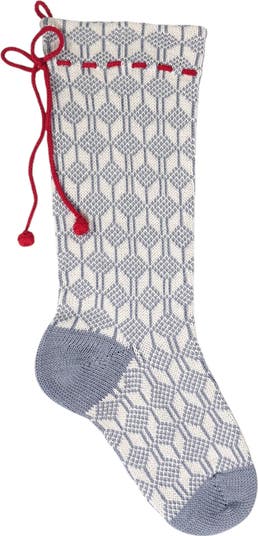 Embrace the elegance of the holiday season with this beautifully crafted knit holiday stocking. Featuring a sophisticated geometric pattern in soft gray and cream tones, this stocking exudes a timeless charm that perfectly complements any festive décor. The subtle, neutral color palette is given a delightful pop of color with the addition of a bright red lace, tied in a bow at the top, adding a touch of festive cheer to the refined design. Perfect for hanging by the fireplace, this stocking is as functional as it is decorative, offering plenty of room for treats, small gifts, and holiday surprises. The durable cotton weave ensures that this stocking will become a cherished part of your holiday traditions for years to come.