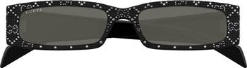 Bedazzle the best of them in these striking rectangular sunglasses shimmering with faceted crystals that form eye-catching geometric patterns on the frames and temples.