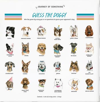 JOURNEY OF SOMETHING - GUESS THE DOGGY CARD GAME - Put your dog knowledge and deduction skills to the test with Guess the Doggy! Use yes or no questions to reveal your opponent’s mystery dog—start with classics like, “Is your dog wearing a collar?” or get playful with fun subjective questions like, “Would you be friends with your dog’s owner?” HOW TO PLAY: Ask Clever Questions - Use classic or quirky queries to find the mystery dog. Reveal Hilarious Perspectives - Discover unexpected opinions about the pups. Be the First to Guess Correctly! WHY YOU’LL LOVE IT: A Must-Have for Dog Lovers Families - Great for game nights and pet lovers. Whimsical Illustrations by Emma Morgan - Charming ink and watercolor designs. Fast-Paced Easy to Play - No complicated rules, just fun! Portable Travel-Friendly - Play anywhere for instant entertainment. ABOUT THE ILLUSTRATOR: Emma Morgan, based in Mornington Peninsula, Australia, specializes in ink and watercolor illustrations of animals and flowers. Her designs capture charm and detail, making each piece a work of art.