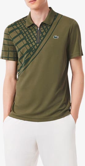 An updated polo styled with a half-zip closure gets the Lacoste signature touch with a croc at the chest.