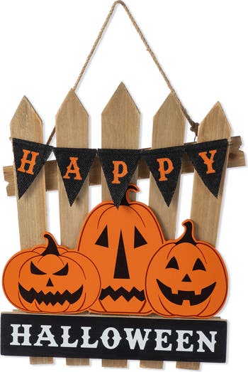 The 14"H Halloween Wood Jack O Lantern Door Hanger is a charming and festive decoration that brings the spirit of Halloween to any front door. The natural wood finish, combined with the vibrant orange of the pumpkins and the striking black lettering, creates a visually appealing piece that is sure to be a highlight of any Halloween decor.