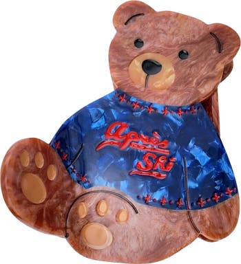 Add wintry charm to your do with this ski-ready teddy bear jaw clip sculpted in a double-sided design that looks great from every angle.