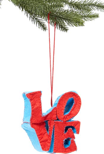 Let the tree get a little flirty with a felted-wool love note that pops in candy red and sky blue and broadcasts big feelings from the bough.