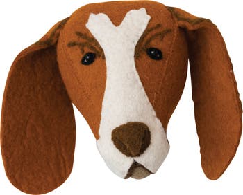 - A cozy and cute wall hanging that features a handmade wool felt dog head in brown, rust, and cream color