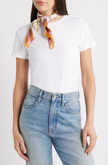 Celebrate COACH s storied leathercraft history with this lightweight silk scarf patterned in an array of colorful hangtags.