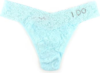 Crystals spell I Do on the edge of a comfortable thong, fabricated from stretchy lace.