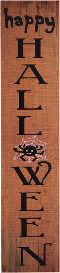 This family-friendly Halloween porch board sign is a festive addition to any autumn decor. Its large size and weathered look make it the ideal choice for Halloween decorating. This adorable porch leaner is perfect for the curated home. Product Features: Happy Halloween porch board sign Black spider and white web design Lightly distressed feature Easy to hang from a sawtooth hanger on the back Recommended for indoor use or outdoor under a covered area Dimensions: 36"H x 8"W x 1"D Material(s): wood