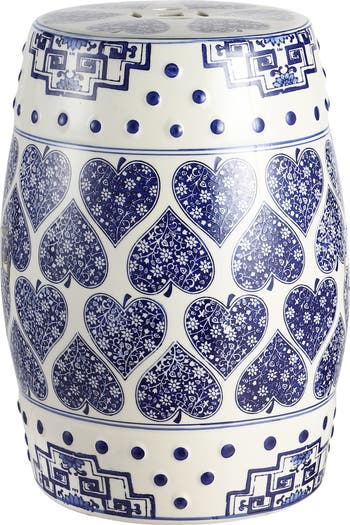 Happy Hearts 17.8" Chinoiserie Ceramic Drum Garden Stool