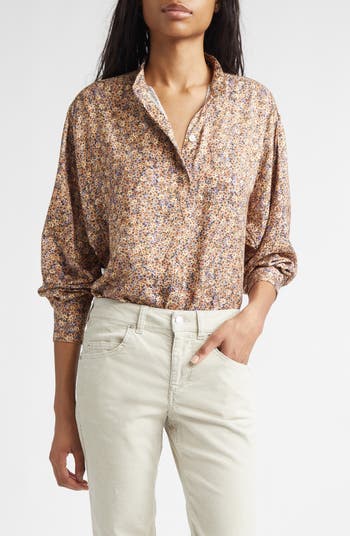 Meadows of minute flowers put a springtime patina on this breezy popover top cut from a silk-enriched viscose blend.