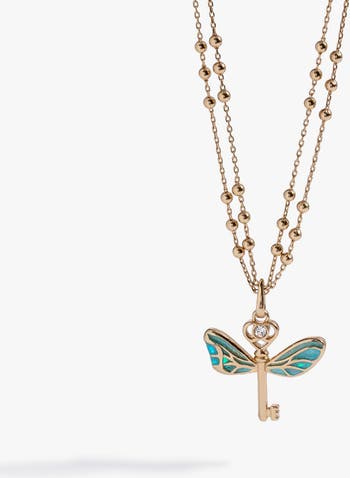 Since 1997, the world has been captivated by the magic of Harry Potter™. Harry, alongside best friends Ron and Hermione, enter the wizarding world and must find a way to outmatch the dark lord and his army. These stories remind us that the magical power of friendship, courage, and perseverance can carry us through dark times. This Flying Keys Adjustable Necklace features a double-layer gold open link and ball chain with a gold key charm with magical translucent blue wings and a clear crystal detail.