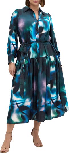 Flow into the moment in this maxi dress that pairs a long-sleeve shirtdress silhouette with a moody abstract print. It s polished enough for the office but flowy enough to keep you comfortable.