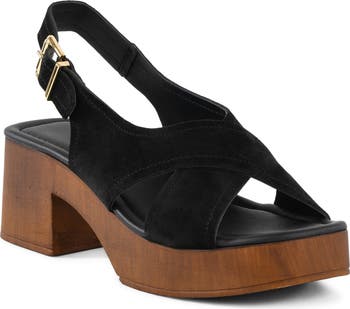 Complete your casual look with the retro-chic style of this slingback sandal grounded by a wood-grain platform sole.