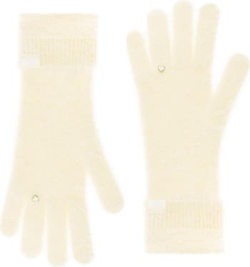 Heart-shaped studs pierce the ring fingers of these cozy ribbed gloves that put a romantic twist on your cold-weather ensembles.