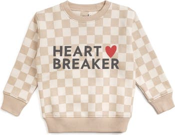 This checkered “Heartbreaker” sweatshirt brings the charm with a pop of red and a dash of attitude—perfect for the little guy who steals hearts everywhere he goes.