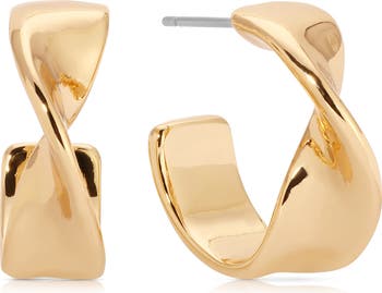 A single twist along the polished curves of these elegant hoops brings eye-catching flair to your day and evening looks.