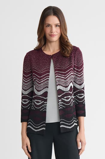 Bring a touch of understated glamour to your layers with this textured knit jacket. Designed with a classic jewel neckline and elegant bracelet-length sleeves, this jacket strikes the perfect balance between refined and relaxed. Slip it on to elevate everyday outfits or add a little sparkle to evening looks. Heritage Fit: This iconic signature silhouette drapes elegantly from the shoulders, gently skimming the body to enhance and flatter all body types. This silhouette is generously sized; if you re in between sizes, we recommend ordering one size down for a better fit.