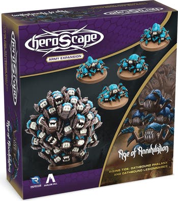 HEROSCAPE: RISING TIDE – OATHBOUND PHALANX OATHBOUND LEGIONNAIRES ARMY EXPANSION - THE BATTLE OF ALL TIME! Bound and pledged to Maladrix, their queen, the legionnaires and phalanx of the insectoid Skyodyre have been given a new chance to defend their honor. Banding together to swarm and infest their opponents, they make any direct assault on the queen a daunting proposition. This Army Expansion introduces the Oathbound Phalanx and Oathbound Legionnaires, elite units who excel at adaptive battlefield tactics and overwhelming force. Together, they bring a unique combination of mobility, versatility, and devastating power to your Heroscape army, making them essential for players looking to dominate through both strategic deployment and brute strength. Expand your armies and fight for Valhalla in HEROSCAPE. Choose your scenario, build your battlefield, select your army, and fight to win! EXPANSION:This is add-on content. A Battle Box and/or Master Set is required for gameplay. AT A GLANCE: For Ages 14+. 2–4 Players* [Note: This is add-on content. A Battle Box and/or Master Set is required for gameplay.]30–90 Minutes. Game Type: Miniature Game Army Expansion, Add-on product. INCLUDES: 5 Highly Detailed, Fully Assembled Unpainted Miniatures (1 Oathbound Phalanx Figure, 4 Oathbound Legionnaires Figures) and 2 Army Cards.